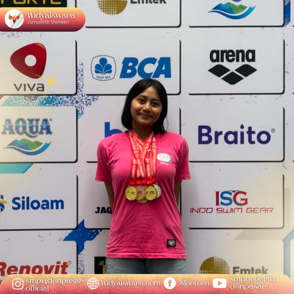 Denpasar, November 2025 — Kebanggaan besar kembali hadir bagi SMP Negeri 14 Denpasar melalui prestasi gemilang yang ditorehkan oleh Ni Kadek Rania Putri, dalam ajang bergengsi Indonesia Open Aquatic Championship 2025. Kompetisi renang tingkat Nasional tersebut diselenggarakan di kompleks Gelora Bung Karno (GBK), Jakarta, pada 11–14 November 2025 dan mempertemukan para atlet muda terbaik dari seluruh Indonesia.